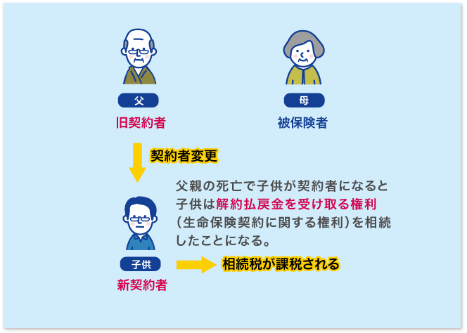 父親が旧契約者で、君が新たな契約者になったとしよう。すると、新たな契約者は「解約返戻金を受け取る権利」を相続したことになるんじゃよ。