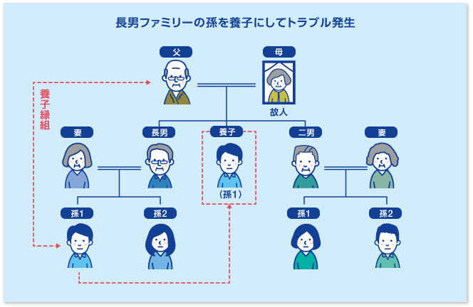 長男家族と二男家族がいたとするのう。二男家族には子どもがいない。長男家族の子ども、つまり孫を養子縁組したらどうなるかのう⁈
