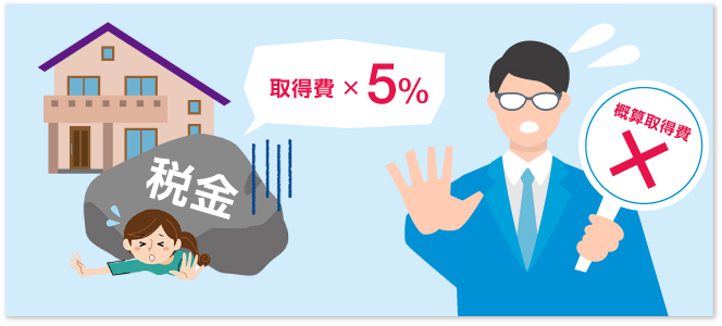 でも、不動産屋さんに相談すると「概算取得費」っていうので税金計算できるみたい
